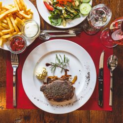 Sie möchten langsam, genussvoll speisen und von allem probieren? Da sind Sie im Hubertus richtig! Starten Sie mit einer leckeren Tomaten-Cremesuppe oder mit Knoblauch-Chili-Garnelen. Oder darf es lieber ein frischer und bunter Salat sein? Im Hauptgang gönnen Sie sich einen unserer stadtbekannten Burger oder Schnitzelgerichte. Aber auch grüne Tagliatelle oder unsere leckere Hubertuspfanne stehen immer auf der Karte. Und zur süßen Veredelung des ganzen eine Creme Brüllee oder einen Schokoladen-Lava-Kuchen mit Vanilleeis. Sie merken schon und Sie werden es spüren: In Ennigerloh lässt es sich genießen. Hubertus macht das Leben schön.